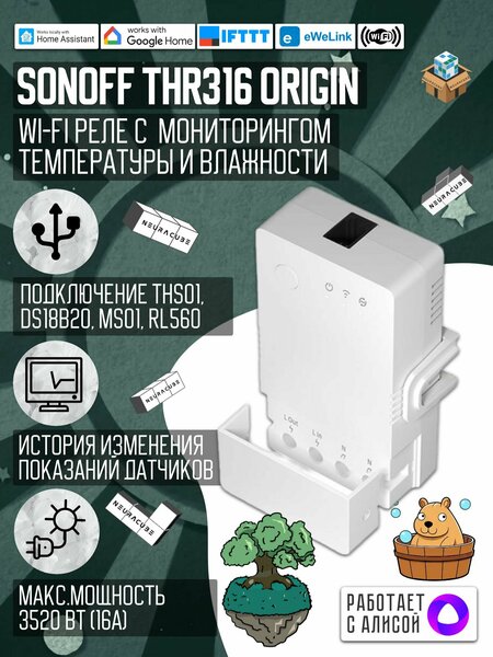 Wi-Fi реле SONOFF TH ORIGIN — умный контроль температуры и влажности Управляйте любыми электроприборами через интернет, создавайте умные сценарии на основе температуры и влажности с SONOFF TH ORIGIN — модернизированной версией моделей TH10/TH16. ✨ Основные преимущества: