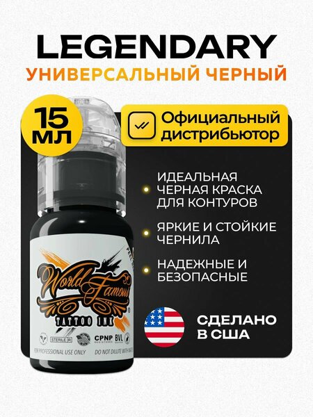 World Famous Tattoo Ink – самые популярные и востребованные пигменты для татуировки на сегодняшний день. Один из лучших современных пигментов. Legendary Outlining Ink» от World Famous Tattoo Ink – это легендарный контурный оттенок черного. Краска для татуировок «Legendary Outlining Ink» – это черный оттенок от World Famous Tattoo Ink, который был создан для создания контуров. Изготавливается с использованием глицерина. Краска для татуировок «Legendary Outlining Ink» от World Famous Tattoo Ink – это проверенный годами легендарный черный оттенок от производителя. Краска разработана специально для того, чтобы создавать контуры рисунков. Состав: Pigment Carbon Black 6 (CI 77266) внимание - некоторые баночки могут быть с колпачками желтого цвета. Это новая партия, на заводе сообщили, что теперь колпачки могут быть непрозрачными. Пигменты оригинальные, данную информацию может подтвердить сам производитель World Famous, а так же официальный дистрибьютор на территории РФ - World Famous Россия
