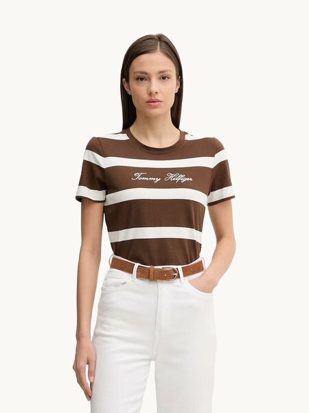 Футболка от бренда TOMMY HILFIGER сочетает в себе стиль и комфорт. Изготовленная из тонкого эластичного трикотажа, она идеально подходит для повседневного ношения. Модель представлена в цвете коричневый/молочный и доступна в размере S.