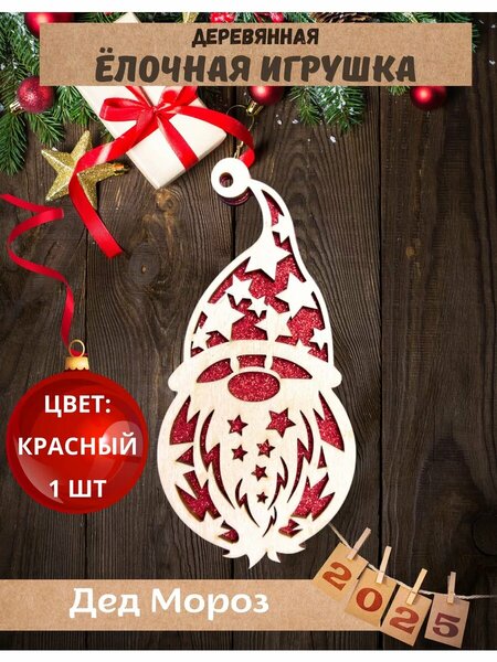 Елочная игрушка Дед Мороз - это оригинальное украшение ручной работы, которое станет идеальным дополнением для вашей праздничной елки в 2025 году. Изготовленная из качественной березовой фанеры, эта игрушка не только украсит интерьер вашего дома, но и станет символом зимнего праздника для маленьких детей и взрослых. В форме милого Дедушки Мороза, она добавит атмосферу волшебства и радости в любой комнате. Эта декоративная игрушка станет замечательным подарком для девочки или мальчика, а также отличным сюрпризом для сестры, дочки или крестницы. Ее можно использовать как элемент оформления не только елки, но и различных интерьеров: детских комнат, садиков или даже школьных классов. Подвесная игрушка отлично подойдет для создания интересных композиций и декораций, добавляя яркие акценты с помощью своих блестящих элементов. Каждая игрушка выполнена с любовью и вниманием к деталям, что делает ее идеальным аксессуаром для рождественского праздника. Она может стать частью вашего семейного традиционного оформления или же милым сувениром для близких и друзей. Благодаря своей эстетичной плоской форме и ярким цветам, игрушка привлечет внимание и станет любимым элементом среди других елочных украшений. Кроме того, Дед Мороз размером 8х13 см может стать отличным материалом для творчества: дети смогут использовать ее в своих поделках и декупажных проектах. Это не только развивает креативные навыки, но и создает незабываемые воспоминания о совместном времяпрепровождении. Подарите своим близким этот красивый символический предмет, который украсит вашу елочку и создаст атмосферу праздника в доме. Елочная игрушка Дед Мороз - это не просто украшение, это часть волшебства, которое наполняет сердца теплом и радостью в зимние праздники. Удивите своих одноклассников или друзей прикольным презентом, который будет радовать глаз и напоминать о чудесах Рождества! Ленточка в комплекте.