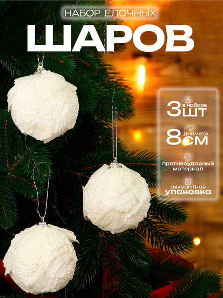 {"widgets":{"@card/UniversalPromoBadge":{"/content/page/fancyPage/defaultPage/universalPromoBadge":{"wrapperProps":{"margins":{"bottom":"3"}},"initialTime":1772329246659,"offerComposeId":"9171312698689745723"}}},"meta":{"/content/page/fancyPage/defaultPage/universalPromoBadge":{"name":"@card/UniversalPromoBadge"}},"collections":{"productServiceSnippets":{"9171312698689745723":{"productSnippet":{"snippetId":"document_id","type":"MODEL_CARD_LAYOUT","productPayload":{"snippetStyle":"NORMAL","title":{"value":"Елочные шары набор 8 см 3 шт, белый"},"badges":{},"price":{"actualPrice":{"amount":{"intPart":242543,"currency":"UZS"},"style":"RED","type":"OTHER_DISCOUNT"},"oldPrice":{"amount":{"intPart":283387,"currency":"UZS"},"style":"STRIKETHROWED"}},"signals":{"customsFee":{"text":{"text":"Возможна пошлина"}}},"gallery":{"mediaItems":[{"picture":{"baseUrl":"https://avatars.mds.yandex.net/get-mpic/16699368/2a00000199ec0e6380d2acd933e012dc3d10/","width":1500,"height":2000,"title":"Елочные шары набор 8 см 3 шт, белый"},"type":"IMAGE"},{"picture":{"baseUrl":"https://avatars.mds.yandex.net/get-mpic/5233339/2a00000199ec0e63866eed77ac7102973e9b/","width":1500,"height":2000,"title":"Елочные шары набор 8 см 3 шт, белый"},"type":"IMAGE"},{"picture":{"baseUrl":"https://avatars.mds.yandex.net/get-mpic/18015493/2a00000199ec0e637c9df29aa0de550de03d/","width":1500,"height":2000,"title":"Елочные шары набор 8 см 3 шт, белый"},"type":"IMAGE"}]},"rating":{"ratingValue":5,"ratingCount":1,"reviewsCount":0,"ratingCountStats":{"cnt1":0,"cnt2":0,"cnt3":0,"cnt4":0,"cnt5":1},"snippet":{"rating":"5.0","type":"product","description":"(1) · 7 купили","descriptionList":["(1)","7 купили"],"ratingStar":"5"}},"wishlistButton":{"businessId":1212181,"mskuId":103605324324,"modelId":831028775,"oskuId":103605324324,"offerId":"lV2a2vcG9rVl85M5k_X2lw"},"productRating":{"rating":"5.0","type":"product","description":"(1) · 7 купили","descriptionList":["(1)","7 купили"],"ratingStar":"5"}},"baobabPayload":{"type":"offer","wareId":"lV2a2vcG9rVl85M5k_X2lw","modelId":831028775,"marketSku":"103605324324","snippet_type":"product","isExpress":false,"price":283387,"additionalPrices":[{"priceType":"withDiscount","priceValue":242543},{"priceType":"unknown","priceValue":283387}],"hid":10563370,"shopId":431782,"shopSku":"sx-20703","supplierId":1212180,"supplierType":3,"isUltima":false,"oskuId":103605324324,"snippetTheme":"GRID_FULL","stockCount":334,"rating":{"rating":"5.0","purchaseCount":"7","gradesCount":"1","ratingType":"product"},"promoLogJoinId":"54646c42528215535fd312a69f9edc35/4a90db079a662b62"},"themeType":"GRID_FULL"}}}}}