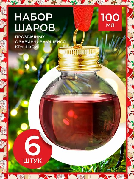 Алкошарики на елку, набор прозрачных шаров с закручивающейся крышкой, герметичные 100 мл 6 штук