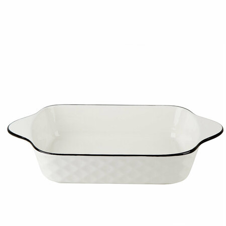 Коллекция столовой посуды Notele - простота и элегантность в вашем доме каждый день. Коллекция представлена в двух дизайнах из высококачественного фарфора. Простые формы подчёркиваются графическим декором, придающий предметам интересный вид. Коллекция Notele будет бесподобно смотреться при ежедневном использовании и отлично сочетается с другими коллекциями от ТМ Nouvelle. Тарелки данной коллекции можно использовать как: десертные, обеденные, столовые и суповые. Салатники же могут применяться как: пиалы, креманки, бульонницы, миски, супницы. Емкость для запекания "Notele", 26,5х14,5 см, Nouvelle Дополнительные подробности: Рекомендуется мыть вручную с применением мягких моющих средств. Нельзя применять абразивные моющие средства во избежание возникновения царапин. Не использовать в микроволновой печи и посудомоечной машине. Температура использования до +300г. Цвет каймы - иссиня-чёрный. Комплектация: емкость - 1 шт Рекомендации по использованию: СВЧ - да. ПММ - да. Размер штуки: 26,5х14,5х5 см Размер товара в упаковке: 23х23х10 см Материал: фарфор. Вид упаковки: картонная коробка. Форма для выпечки и запекания с ручками фарфоровая прямоугольная жаростойкая может использоваться для приготовления кексов, десертов, выпечки, пирогов, кондитерских изделий, запеканок, жаркого, вторых блюд, запекания мяса и курицы. Может использоваться как: формочка кулинарная, термостойкая форма, емкость для запекания и выпечки, форма для духовки, шубница, блюдо для слоеных салатов, салатник для селедки под шубой, селедочница для сельди под шубой.