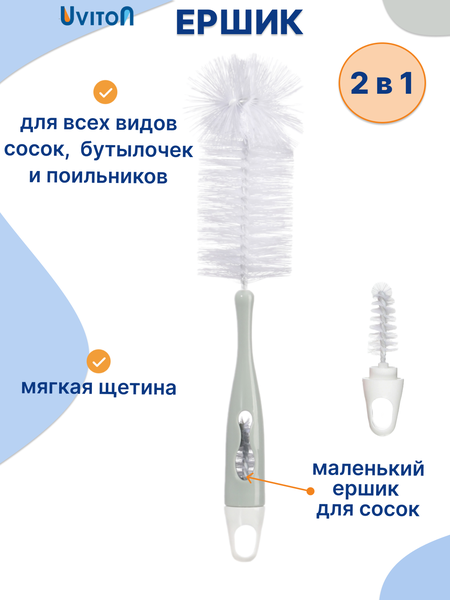 Ершик и щеточка для мытья бутылок и посуды (2 в 1) от бренда Uviton