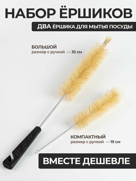 Набор ершиков включает различные модели. Ваш 14 февраля будет ярким с этим аксессуаром. Ершик из натуральной щетины и нержавеющей стали, длина 35 см и короткий ершик 19 см. Качественный и стильный подарок на 23 февраля для вас и ваших близких. Имея такой ерш, вы забудете про грязь, с которой раньше не могли справиться обычной губкой. Подготовьтесь заранее, чтобы день Защитника Отечества прошел идеально. Ершик кухонный прекрасно подойдет для дома и кухни каждой домохозяйке. Этот подарок станет удачным приобретением, которое точно пригодится на 8 марта. Узкий ершик длинный подходит для бутылок детских и сосок, спортивных бутылок, пробирок и поильников, для бутылочек и бутылок маленьких, для мытья детской посуды. Ершик для пыли подойдет для уборки в труднодоступных местах. Ёршик позволяет эффективно очищать поверхность предмета, обеспечивая гигиену и свежесть. Ершик для бутылок тонкий пригодится каждому. Ерши отлично справляются с очищением, удаляя загрязнения в труднодоступных местах. Ершики для бутылочек детских рассчитаны на многоразовое использование. Ершик для бутылок детских для тщательной очистки внутренних поверхностей. Ершик для мытья бутылок имеет мягкую щетину, удаляет остатки пищи и молока. Щетка с длинной ручкой облегчает процесс чистки, позволяя легко добраться до труднодоступных мест и обеспечивая удобство использования. Щеточка для мытья бутылочек подходит для чистки аквариумов, очистки салона автомобиля или рабочих инструментов, стаканов, для носиков чайников. Щетка для уборки в труднодоступных местах узкая помогает очистить поверхности. Щетки для бутылочек детских представлены в различных размерах. Ершик для трубочек затронет каждый мм принадлежности для кухни! Щетки для кухни отлично подойдут в подарок маме, жене, бабушке. Ерши отлично справляются с глубоким очищением. Щетка для бутылок сделает их как новые, подойдет под чайник, для термоса, для трубки, для бокалов и для банок! Щетка для мытья бутылок используется для чистоты посуды.
