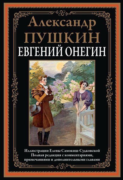 Приступая к первой главе «Евгения Онегина», Александр Сергеевич Пушкин (1799–1837) и не подозревал, что создаст одно из своих лучших произведений. Начатый без плана, как шуточный рассказ, роман в стихах превратился настоящую энциклопедию жизни целого общественного слоя России первой четверти XIX в. В «Онегине» поражает широта затронутых тем, внимание к деталям быта, интригующий сюжет, глубина описания персонажей. Особенности жизни той эпохи показаны в романе с непревзойденным мастерством. А. С. Пушкин писал «Евгения Онегина» около семи с половиной лет (1823–1830) и вложил в него всю свою душу. Таким эпохальным трудом для Гёте был «Фауст», а для Байрона — «Паломничество Чайльд Гарольда» и «Дон Жуан». Начав писать «Онегина», А. С. Пушкин не рассчитывал на публикацию и работал, как он сам выражался, «спустя рукава», то отражая в очередной главе собственную жизнь, то делая лирические отступления, полные тонкого юмора или глубокого элегического чувства. В результате родился шедевр, с которым сегодня знаком каждый образованный россиянин. В данное издание, помимо классического текста романа, включены многочисленные комментарии, которые помогают лучше разбираться в реалиях российской жизни начала XIX в, а также обширная статья известного литературоведа XIX в. Льва Ивановича Поливанова об истории создания и художественных особенностях этого уникального произведения. В конце издания приводятся варианты некоторых строф и частей романа, которые сохранились только в рукописях поэта, а также «Отрывки из путешествия Онегина», восстановленные A. Ф. Бычковым по рукописной тетради А. С. Пушкина. Книгу украшают великолепные цветные иллюстрации Елены Петровны Самокиш-Судковской, урожденной Бенард (1863–1924), которые позволяют воочию увидеть и героев романа, и окружавшую их жизнь. Елена Петровна родилась в Петербурге в семье военного инженера Петра Петровича Бенарда. Училась живописи в Гельсингфорской рисовальной школе и брала частные уроки у В. П. Верещагина. Ее работы демонстрировались наряду с полотнами таких мэтров живописи, как И. И. Шишкин и И. Е. Репин. Художница много времени уделяла книжной иллюстрации, плакатам и афишам; увлекалась модерном, отсюда любовь к орнаментальным бордюрам, виньеткам, заставкам и концовкам. В 1883 г. она вышла замуж за академика живописи Р. Г. Судковского, но через 2 года он скончался от тифа; в 1889 г. вышла замуж за художника Н. С. Самокиша, — отсюда ее двойная фамилия. Революционные события 1917 г. заставили Е. П. Самокиш-Судковскую перебраться в относительно спокойный Выборг. Позже художница эмигрировала во Францию, скончалась в Париже в 1924 г.
