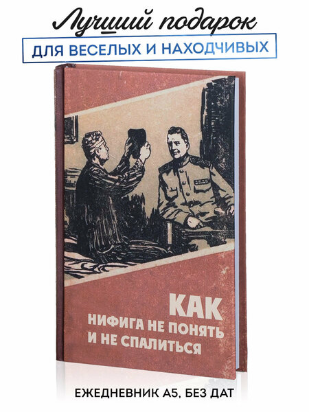 Проект Librateka / Либратека – Несуществующие книги. Ежедневник недатированный А5 "Как нифига не понять и не спалиться" от Kawaii Factory. Ежедневник 2025 в твердом переплете - оригинальный подарок на день рождения. Планер ежедневник в ретро стилистике книг СССР, формат А5. 104 белоснежных листа/208 страниц с разлиновкой (в линейку). Без привязки к году/месяцам - недатированный. Еженедельник в линейку можно использовать как блокнот для записей, дневник для учета доходов и расходов и планирования дел. Используйте блокнот А5 как планировщик для записи дел на день, на неделю, на год, как блокнот желаний, календарь вашего успеха! Плотная качественная бумага, можно писать как фломастерами (выделителями), так и ручками. Для кого: Мы больше 15 лет придумываем прикольные штуки и оригинальные подарки для женщин и мужчин. Наш мужской ежедневник "Как не понять." –это прикольный подарок подруге или сестре на день рождения. Преподнесите его в подарок женщине с чувством юмора, но отлично подойдет и как подарок мужчине. Придумано и произведено в России, в подарок учителю. Смешной подарок парню на день рождения, самоуверенному коллеге, начальнику или боссу. Подарок сестре на др, на Новый год или 1 Сентября, для творческого человека. Идея для подарка на день отца! Планинг недатированный в подароке папе на др, блокнот для записей, смешная и милая канцелярия для школы или офиса. Загляните на страницу нашего бренда - мы производим много прикольных штучек, милой и красивой канцелярии, подарки женщинам. Каждый месяц издаем новые женские ежедневники А5 из серии "Несуществующие книги", предлагайте свои творческие идеи для новых дизайнов в комментариях!