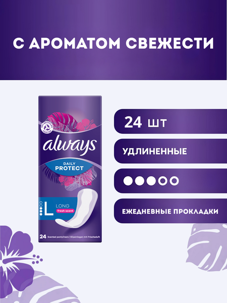 Ежедневные прокладки Always Long Fresh Scent – это гигиеническое средство, которое поможет вам оставаться уверенной в себе на протяжении всего дня. Они станут настоящей находкой при нерегулярном менструальном цикле и выделениях из влагалища, обеспечивая защиту нижнего белья и одежды от загрязнений. Благодаря оптимальной толщине в 3 мм, прокладки не сковывают движений, не просматриваются сквозь наряд и совершенно не ощущаются в носке. Ароматизированные прокладки Always Long Fresh Scent обладают свежим ароматом, который подарит вам длительные чувства чистоты и свежести. В упаковке содержится 24 прокладки, что обеспечивает комфортное использование на протяжении длительного времени. Страна бренда – США, что гарантирует высокое качество и надежность продукции. Выбирая ежедневные прокладки Always Long Fresh Scent, вы получаете надежное и удобное средство гигиены, которое обеспечит вам комфорт и уверенность в течение всего дня.