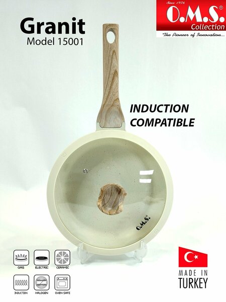 Наша продукция состоит из внутренней и внешней гранитной отделки. При первом использовании промойте изделие горячей водой и хорошо очистите его. При первом использовании нанесите немного масла на изделие , а затем подержите его немного в таком положении, и оно будет готово к использованию. Не нагревайте изделие без каких-либо предметов внутри . Используйте деревянные или пластиковые ложки при использовании изделия. Внешняя и внутренняя поверхности из безопасного для здоровья 4-х слойого высококачественного птфэ антипригарного гранитного покрытия. Толстое энергосберегающее дно. Эстетичные , эргономичные не нагревающиеся ручки софт тач.