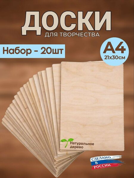 Заготовки из фанеры А6, А5, А4, А3 формата представляют собой набор досок для творчества любого вида. Доски-заготовки для творчества могут стать как подарком к празднику, так и приятной открыткой для поздравления и поэтому актуальны всегда. Заготовки для творчества сделаны из качественной березовой фанеры 3 мм, дополнительно отшлифованы и имеют закругленные края. Тщательно отшлифованные с двух сторон наборы досок не имеет острых углов, доски для выжигания и росписи из дерева безопасны для использования в работе. Доски-заготовки можно пригодятся аа уроках труда и на уроках в художественных школах и студиях. Наборы досок хорошо подходят для развития ребенка, так как рукоделие и творчество играет важную роль в этом, а наборы станут лучшим подарком. Выжигание по дереву помогает развивать фантазию. Доски для выжигания позволят ребенку вместе родителями делать поделки для творчества своими руками. Наборы досок из фанеры можно использовать, чтобы делать любые поделки с ребенком. Доски-заготовки также можно использовать как фанеру для лазерной резки. Отшлифованные фанерные доски есть в разных размерах: Формат А6 - 105х148 мм. Формат А5 - 148х210 мм. Формат А4 - 210х297 мм. Формат А3 - 297х420 мм. Размер указан на фото.