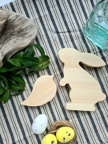 Заготовки зайчик и маленькая птичка из дерева от бренда АРТ птица – это идеальный материал для реализации ваших творческих идей. Изготовленная из хвойных пород, заготовка обладает приятной текстурой и легко поддается обработке, что делает ее подходящей как для начинающих, так и для опытных мастеров. Вы можете использовать ее для выжигания, резьбы по дереву или росписи, декупажа, создавая уникальные поделки, пасхальные композиции, украшения для дома или оригинальные подарки и творческие поделки. Проявите свою фантазию и вдохновение, превратив простую заготовку в произведение искусства! Цельноламельный древесный материал имеет разную текстуру и рисунок. Рисунок дерева на фото может отличаться от полученного покупателем товара. Размер зайчика: 9,5х12.2 см, толщина заготовки 1,8 см Размер маленькой птички: 8,4х5.2 см , толщина заготовки 1,8 см