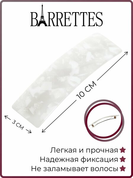 {"widgets":{"@card/UniversalPromoBadge":{"/content/page/fancyPage/defaultPage/universalPromoBadge":{"wrapperProps":{"margins":{"bottom":"3"}},"initialTime":1771748375262,"offerComposeId":"13861692831596353858"}}},"meta":{"/content/page/fancyPage/defaultPage/universalPromoBadge":{"name":"@card/UniversalPromoBadge"}},"collections":{"productServiceSnippets":{"13861692831596353858":{"productSnippet":{"snippetId":"document_id","type":"MODEL_CARD_LAYOUT","productPayload":{"snippetStyle":"NORMAL","title":{"value":"Заколка для волос BARRETTES, Франция, для среднего объема волос, длина 10 см, ацетат"},"badges":{},"price":{"actualPrice":{"amount":{"intPart":774779,"currency":"UZS"},"style":"RED","type":"OTHER_DISCOUNT"},"oldPrice":{"amount":{"intPart":864870,"currency":"UZS"},"style":"STRIKETHROWED"}},"signals":{"customsFee":{"text":{"text":"Возможна пошлина"}},"lastStock":{"text":{"text":"Осталось 3 шт"},"level":"CRITICAL"}},"gallery":{"mediaItems":[{"picture":{"baseUrl":"https://avatars.mds.yandex.net/get-mpic/7698402/2a000001927b7b17d6d0c2289cbc2430d93b/","width":1500,"height":2000,"title":"Заколка для волос BARRETTES, Франция, для среднего объема волос, длина 10 см, ацетат"},"type":"IMAGE"},{"picture":{"baseUrl":"https://avatars.mds.yandex.net/get-mpic/4516625/2a000001927b7b189cda33b5917a90135c09/","width":2000,"height":2000,"title":"Заколка для волос BARRETTES, Франция, для среднего объема волос, длина 10 см, ацетат"},"type":"IMAGE"},{"picture":{"baseUrl":"https://avatars.mds.yandex.net/get-mpic/6269810/2a000001927b7b1388b5bbc622c0d1f1f26f/","width":1500,"height":2000,"title":"Заколка для волос BARRETTES, Франция, для среднего объема волос, длина 10 см, ацетат"},"type":"IMAGE"},{"picture":{"baseUrl":"https://avatars.mds.yandex.net/get-mpic/4250892/2a000001927b7b132ec983a7a3684d0e22a2/","width":2000,"height":2000,"title":"Заколка для волос BARRETTES, Франция, для среднего объема волос, длина 10 см, ацетат"},"type":"IMAGE"},{"picture":{"baseUrl":"https://avatars.mds.yandex.net/get-mpic/1937077/2a000001927b7b132e69d2a9296a10d868f9/","width":2000,"height":2000,"title":"Заколка для волос BARRETTES, Франция, для среднего объема волос, длина 10 см, ацетат"},"type":"IMAGE"},{"picture":{"baseUrl":"https://avatars.mds.yandex.net/get-mpic/4383514/2a000001927b7b13871d6a531d04621c6472/","width":2000,"height":2000,"title":"Заколка для волос BARRETTES, Франция, для среднего объема волос, длина 10 см, ацетат"},"type":"IMAGE"},{"video":{"url":"https://frontend.vh.yandex.ru/player/vlxg4BA4rdRc","width":768,"height":1024,"title":"Заколка для волос BARRETTES, Франция, для среднего объема волос, длина 10 см, ацетат","preview":{"baseUrl":"https://avatars.mds.yandex.net/get-mpic/5233452/2a00000192cd933a0b253c076d5238294362/","width":768,"height":1024,"title":"Заколка для волос BARRETTES, Франция, для среднего объема волос, длина 10 см, ацетат"},"streams":[{"type":"dash","url":"https://strm.yandex.ru/vod/vh-market-upload-converted/vod-content/8037263469203900088/16d9c8bb-8e20-4e08-91af-220b6c8b9651/kaltura/desc_aaf6d6112ec4939f2122bca7bee26f26/1690304574347810967/ysign1=d01604d76941b9eda94ed98c05da7f46ae16bba50dca886001e8cbef3eafaceb,abcID=1632,from=unknown,pfx,sfx,ts=69a7eb17/manifest.mpd"},{"type":"hls","url":"https://strm.yandex.ru/vod/vh-market-upload-converted/vod-content/8037263469203900088/16d9c8bb-8e20-4e08-91af-220b6c8b9651/kaltura/desc_aaf6d6112ec4939f2122bca7bee26f26/1690304574347810967/ysign1=fff43f4e95694900f3502eaab8b9513a1336ff797b9aa39b9a1482a53fca54a0,abcID=1632,from=unknown,pfx,sfx,ts=69a7eb17/master.m3u8"}],"playerId":"vlxg4BA4rdRc"},"type":"VIDEO"}]},"rating":{"ratingValue":4.8,"ratingCount":5,"reviewsCount":2,"ratingCountStats":{"cnt1":0,"cnt2":0,"cnt3":0,"cnt4":1,"cnt5":4},"snippet":{"rating":"4.8","type":"product","description":"(5) · 14 купили","descriptionList":["(5)","14 купили"],"ratingStar":"5"}},"wishlistButton":{"businessId":49318876,"mskuId":103568108953,"modelId":782780895,"oskuId":103568108953,"offerId":"Uo2d5lRfmn9T9yfW8ePzvg"},"productRating":{"rating":"4.8","type":"product","description":"(5) · 14 купили","descriptionList":["(5)","14 купили"],"ratingStar":"5"}},"baobabPayload":{"type":"offer","wareId":"Uo2d5lRfmn9T9yfW8ePzvg","modelId":782780895,"marketSku":"103568108953","snippet_type":"product","isExpress":false,"price":864870,"additionalPrices":[{"priceType":"withDiscount","priceValue":774779},{"priceType":"unknown","priceValue":864870}],"hid":63628928,"shopId":431782,"shopSku":"dcmp-12682880277891237802","supplierId":86306352,"supplierType":3,"isUltima":false,"oskuId":103568108953,"snippetTheme":"GRID_FULL","stockCount":3,"rating":{"rating":"4.8","purchaseCount":"14","gradesCount":"5","ratingType":"product"},"promoLogJoinId":"a0a4237849373ed3481c5884fc9620ce/8f1bf249ed4ea891","shopPromoIds":["price_increase_promo_86306352"]},"themeType":"GRID_FULL"}}}}}