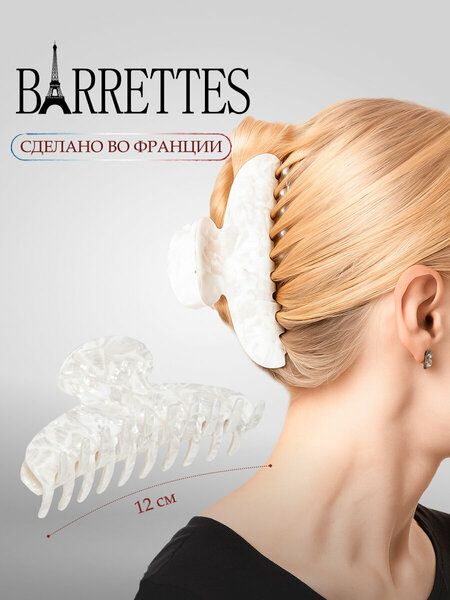 Заколка крабик для волос Barrettes, Франция, ручная работа, ацетат, длина 12 см, белый перламутр