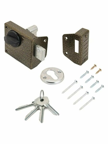 Замок накладной Зенит ЗН1-2 (бронза) - это надежное и качественное решение для защиты вашей деревянной двери. Изготовленный из прочной стали, этот замок обеспечивает долгий срок службы и устойчивость к внешним воздействиям. Замок оснащен цилиндровым механизмом и вертушкой, что обеспечивает удобство использования и простоту установки. Засов прямоугольного сечения имеет размеры 9х28 мм и максимальный вылет 25 мм, что позволяет обеспечить надежную защиту вашей двери. Замок имеет габариты 90,5х78х21 мм и удаление ключевого отверстия 55 мм, что делает его компактным и удобным для установки на различные типы дверей. В комплекте с замком идут 4 ключа, запорная планка и накладка, что позволяет сразу приступить к использованию замка после установки. Замок открывается и закрывается изнутри ручкой, а снаружи ключом, что обеспечивает высокий уровень безопасности и удобство использования. Замок накладной Зенит ЗН1-2 (бронза) станет отличным выбором для тех, кто ценит надежность и качество.