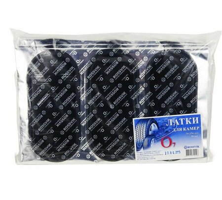 Размер 70х150 мм. Овальные латки Rossvik предназначены для ремонта разрывов автомобильных камер любого типа. Для ремонта повреждений, превышающих размер заплатки, применяется метод последовательной установки нескольких латок внахлест - при этом нижняя латка в зоне нахлеста должна быть зачищена сверху.