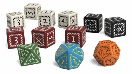 Двенадцать фирменных игральных костей для настольной ролевой игры «Запретные земли», производства Польша Q-Workshop. В набор входят: