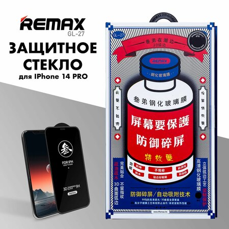 Защитное стекло для Айфон 14 Pro Remax GL-27, спиртовая салфетка из микрофибры, стикеры для удаления пыли, инструкция по наклеиванию, надежная упаковка