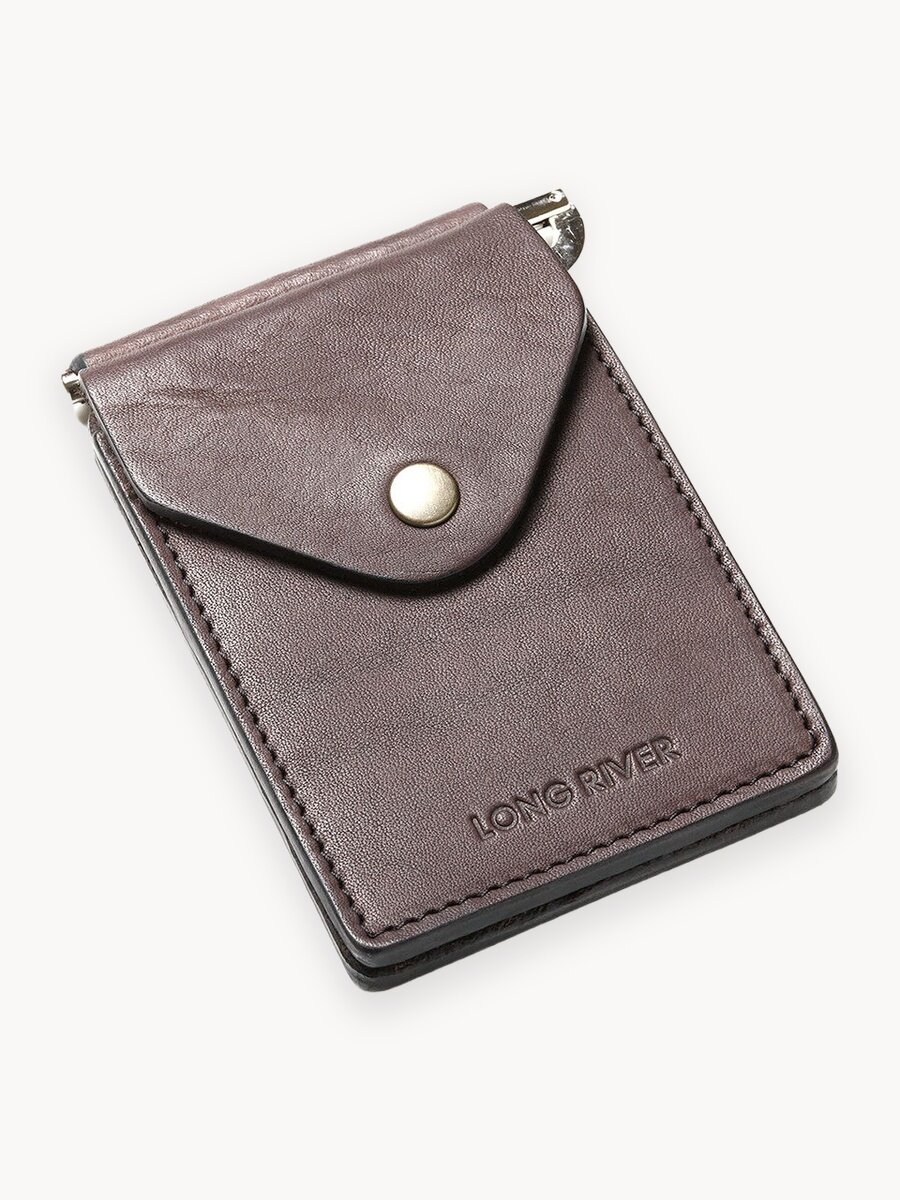 Представляем вам кожаный зажим для денег Long River коричневого цвета. Бумажные деньги удерживаются с помощью откидной клипсы, а сам зажим рассчитан на купюры любого формата. В нем также имеется карман для монет, и парочка карманов для кредитных и дебетовых карт. Для изготовления использовалась наша фирменная плотная кожа, края ее прокрашены и заполированы, а качественные капроновые нитки не боятся дождя и снега.