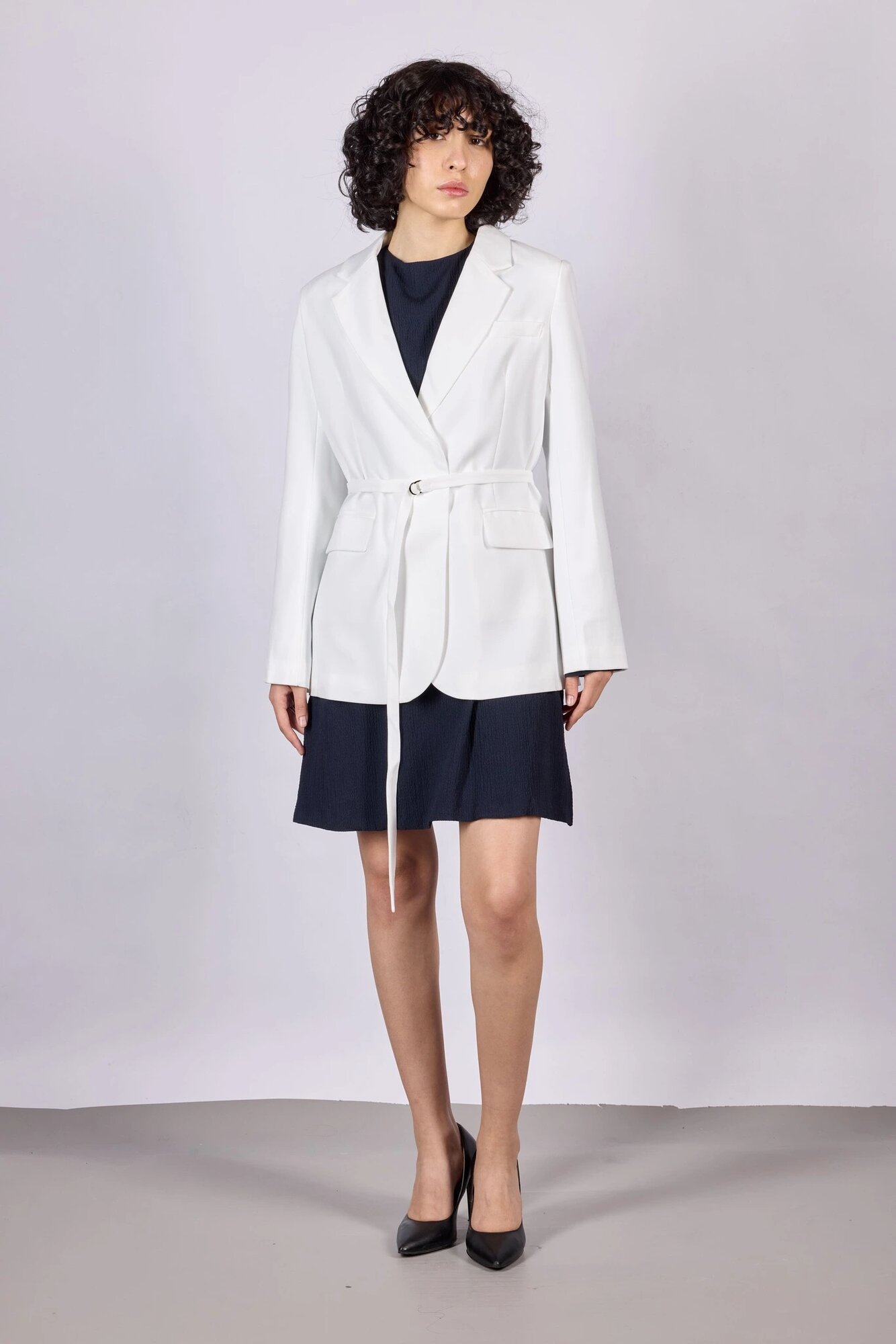 Элегантный жакет с поясом на талии в тон — утончённая модель, которая подчеркнёт фигуру и придаст образу стильный, изысканный вид. Отлично подходит как для офисных луков, так и для вечерних выходов, создавая гармоничный и женственный силуэт.