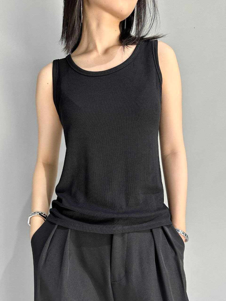 Базовая женская майка без рукавов Фасон: Классический прилегающий крой, слегка удлинённый, с закруглённым вырезом Длина: До линии бёдер Цвета: Белый, светло-серый, чёрный Детали кроя: Вырез: Глубокий круглый вырез спереди и на спине Бретели: Широкие, удобные, не перекручиваются и не врезаются в плечи Ткань: Трикотаж с тонкой вертикальной фактурой (возможно, рибана), что придаёт изделию лёгкую текстурность и эластичность Назначение и стиль: Назначение: Подходит для повседневной носки, спорта, домашнего использования или как нижний слой под рубашки, жакеты, свитера Сезонность: Круглогодичное использование — как самостоятельная вещь летом или как базовый слой в холодное время года Стиль: Минимализм, кэжуал, базовый гардероб, капсула