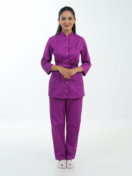 Стильный женский медицинский костюм: комфорт и эстетика для профессионалов Представляем универсальный женский медицинский костюм премиум-класса, идеально подходящий для специалистов в области медицины, косметологии, бьюти-сферы, поварского дела и парикмахерского искусства. Этот модный брючный комплект разработан с учётом ежедневной активности работника и сочетает в себе практичность, эстетику и комфорт. В комплект входит приталенная рубашка на кнопках с поясом, коротким рукавом и функциональными карманами — удобный аналог блузки для активной работы. Брюки джогеры на резинке и завязками по бокам адаптируются под особенности фигуры, обеспечивая свободу движения. Штаны подходят женщинам любого типа телосложения, включая обладательниц больших размеров. Мед одежда выполнена из трикотажной ткани с добавлением эластана, что делает его особенно мягким и эластичным. Натуральный хлопок в составе обеспечивает отличную воздухопроницаемость, предотвращает перегрев и подходит для длительных рабочих смен. Трикотаж имеет стрейч эффект повышает эргономичность изделия и способствует свободе движений в течение всей смены. Этот медкостюм отвечает стандартам спецодежды и может использоваться как хирургическая форма, униформа врача, косметолога, медика, массажиста, повара, медсестры, мастера маникюра, парикмахера и даже кондитера. Спец форма отлично смотрится в салоне, клинике, медицинском учреждении, массажном кабинете и любой другой профессиональной среде. Современный крой и красивый силуэт подчёркивают фигуру, не сковывая движения. Медицинская одежда не обязана быть скучной. Хирургичка — идеальное сочетание стиля, комфорта и надёжности. Подходит для регулярного использования и стирки, не теряя форму и насыщенность цвета. Ткань устойчива к износу, а фасон остаётся актуальным в любой сезон. Доступен в нескольких размерах и расцветках. Отличное решение для тех, кто ценит красоту, удобство и профессиональный внешний вид. Вся информация предоставлена продавцом