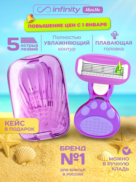 Бритва женская mini - это забота и нежность к себе каждый день. Маленький станок интимной гигиены станет верным спутником в дороге. Бритвенная система разработана специально для комфортного бритья и удаления волос, чтобы подарить вам соблазнительную гладкость. Пять лезвий из нержавеющей стали с алмазным напылением обеспечивают гладкость без порезов даже в зоне бикини. Увлажняющая подушечка с алоэ, витамином Е и маслом Ши смягчает кожу вовремя процедуры и защищает от раздражений и вросших волос. Подушечка-индикатор напоминает о замене кассеты, что помогает сохранить и продлить безупречность процедуры. Эргономичная мини-ручка с резиновой вставкой способствует надежному захвату для уверенности движений даже в мокрых руках. Защитный футляр сохраняет от повреждений во время путешествий. Герметичная упаковка гарантирует, что заказ прибудет в неприкосновенном состоянии. Прекрасная возможность проявить внимание через подарок себе, сестре, подруге, девочке, девушке или маме нежность и красоту без повода или на день рождения др. Infinity превращает процесс депиляции в приятную медитацию. Инфинити гарантирует результат непревзойденной ухоженности, которая будет привлекать восхищенные взгляды.