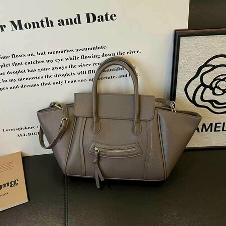 CELINE Luggage — женская сумка, черная кожа, золотая фурнитура. Элегантная сумка CELINE Luggage из черной кожи с узнаваемым «крылатым» силуэтом, золотистой фурнитурой и передним карманом на молнии. Практичная и стильная модель для повседневного ношения и городских образов. Особенности модели: • Цвет: классический черный • Материал: натуральная кожа с легкой текстурой • Фурнитура: золотистого тона • Силуэт: структурированный «крылатый» корпус с характерными боковыми «крыльями», создающими объёмный силуэт • Ручки: две короткие ручки для переноски в руках • Плечевой ремень: съёмный и регулируемый длинный ремень для ношения через плечо/кросс-боди • Основное закрытие: верхняя молния, «крылья» при необходимости можно слегка распахнуть • Внешние отделения: передний накладной карман на молнии с кисточкой-пуллером • Логотип: тиснёный/металлический логотип CELINE Paris на лицевой част