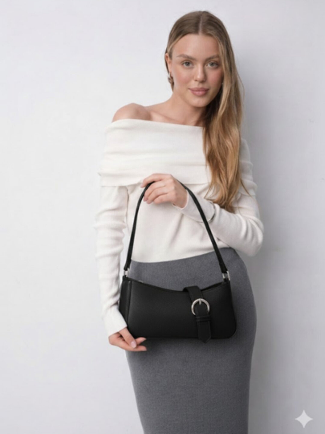 Данная модель выполнена в современном минималистичном стиле. Удлинённая форма и декоративное металлическое кольцо на передней панели создают аккуратный и модный образ. Несмотря на компактные размеры, сумка легко вмещает телефон, кошелёк, ключи и косметику. Удобная ручка позволяет комфортно носить её на плече. Идеально подходит для повседневных выходов, встреч и прогулок. ✔ Лёгкая и удобная ✔ Современный дизайн ✔ Подходит для ежедневного использования ✔ Отличный вариант для стильного образа Если вам нужна компактная и модная сумка — эта модель станет отличным выбором. Характеристика: Тип: Женская сумка на плечо Дизайн: Минималистичный, с металлическим кольцом Форма: Удлинённая, компактная Ручка: Плечевая Тип закрытия: Молния / внутренний замок Внутреннее отделение: Основное компактное Назначение: Повседневное использование Стиль: Casual / современный