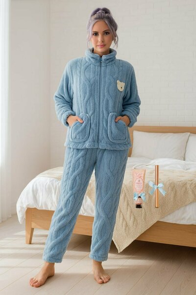 Женская зимняя пижама Подарите себе уют и комфорт в холодные вечера — выберите стильную зимнюю пижаму для домашнего отдыха. Эта модель создана для тех, кто ценит мягкость, тепло и эстетику даже в домашней одежде. Почему стоит выбрать эту пижаму: Тепло и комфорт. Плотный, но дышащий материал надёжно сохраняет тепло, обеспечивая приятные ощущения во время сна и отдыха. Мягкость. Нежная текстура ткани не раздражает кожу и дарит ощущение уюта. Стильный дизайн. Актуальный крой и продуманные детали делают пижаму не только удобной, но и визуально привлекательной. Практичность. Материал устойчив к деформации и сохраняет внешний вид после множества стирок. Универсальность. Подходит для сна, домашнего отдыха и расслабленного времяпрепровождения. Особенности модели: комплект: верх (рубашка/кофта/свитер) + низ (брюки/шорты — зависит от модели); материал: футер двунитка / флисовая ткань / микрофибра с начёсом (уточняйте в карточке товара); состав: хлопок с добавлением полиэстера или эластана (точный состав указан на этикетке); крой: свободный, не сковывающий движения; застёжка: отсутствует либо на пуговицах (в зависимости от модели); карманы: возможны боковые карманы на брюках (уточняйте комплектацию). Размеры: представлены от XS до XXL (сверяйтесь с размерной сеткой в карточке товара). Цвета: широкая палитра — от классических (белый, бежевый, серый) до ярких и пастельных оттенков (уточняйте наличие). Рекомендации по уходу: стирка при температуре не выше 30–40 °C (режим «деликатная стирка»); использовать мягкие моющие средства без отбеливателей; не отжимать в стиральной машине на высоких оборотах; сушить в расправленном виде вдали от нагревательных приборов; гладить при низкой температуре (если разрешено по составу материала); избегать сушки в барабане. Создайте атмосферу домашнего уюта — выберите женскую зимнюю пижаму уже сегодня!