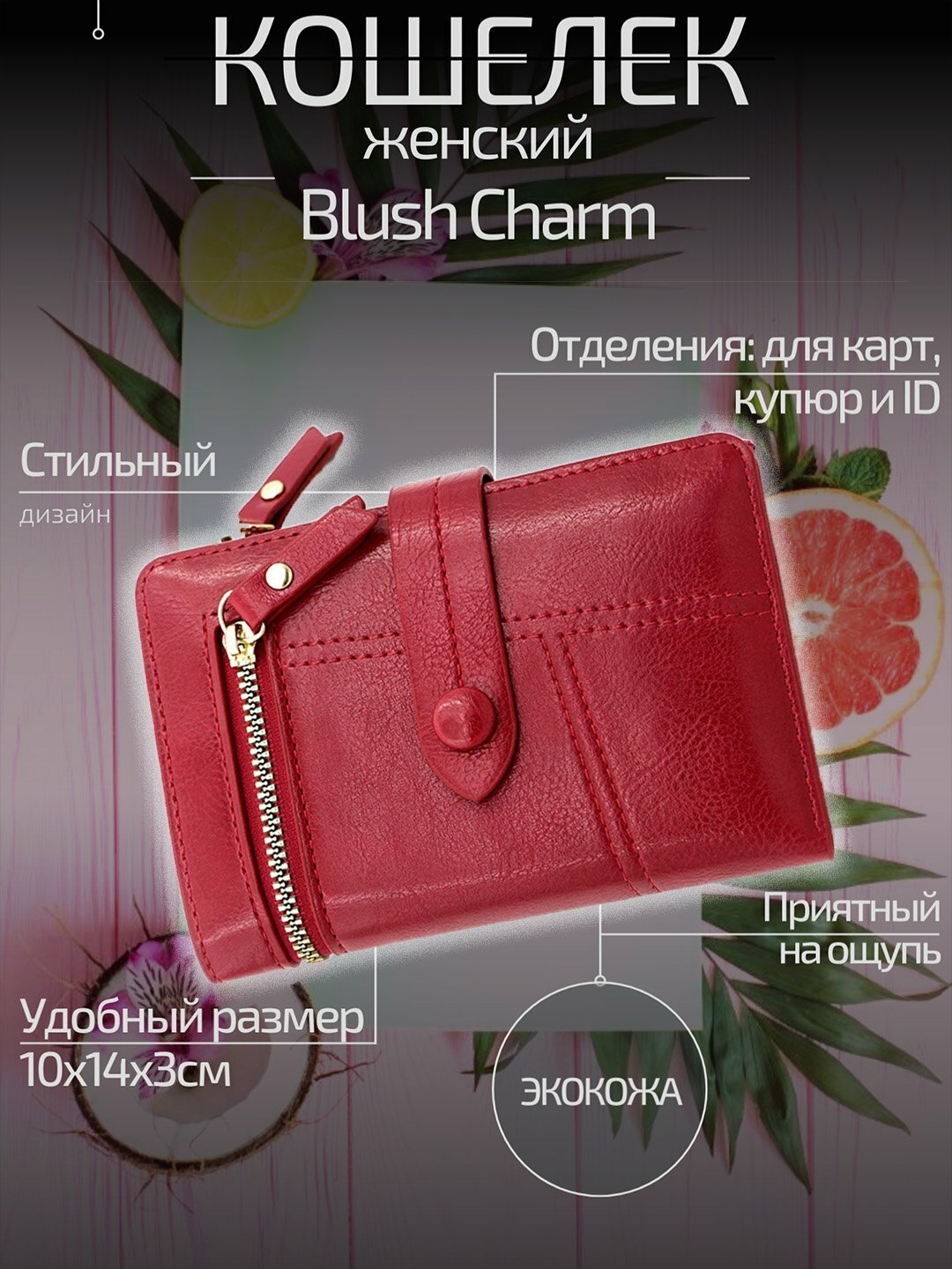 Женский кошелек Blush Charm R823-1 Элегантный женский кошелёк в мягких цветах, выполненный из экокожи с матовым эффектом. Компактная модель оснащена застёжкой-кнопкой и внешним кармашком на молнии с золотистой фурнитурой. Аккуратные декоративные строчки придают изделию изысканный и стильный вид. Идеально подойдёт для хранения купюр, карт и мелочи, а также станет прекрасным аксессуаром для повседневного образа. • Отделения для пластиковых карт • Отделение для купюр • Отделение для ID • Материал: экокожа • Размеры: 10*14*3см