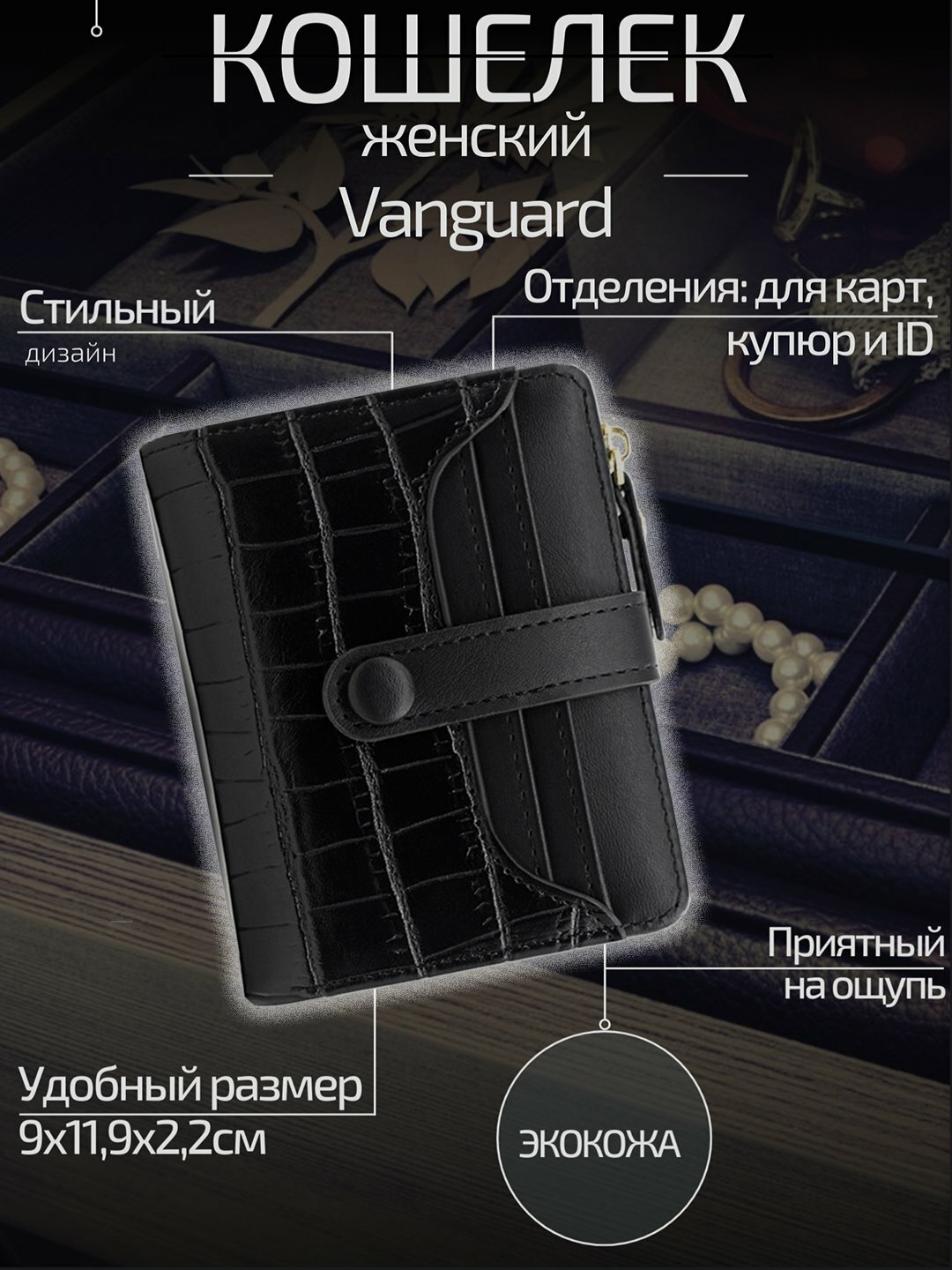 Женский кошелек Vanguard Р433-15 Компактный и функциональный кошелек Vanguard - ваш незаменимый помощник для хранения самых необходимых карт и наличных. Сочетание гладкой и фактурной поверхности под крокодиловую кожу создает стильный и современный вид. Кошелек имеет несколько слотов для карт, расположенных в удобном доступе, а также отделение на молнии для монет. Благодаря своему небольшому размеру, он легко поместится в кармане или небольшой сумочке. • Отделения для пластиковых карт • Отделение для купюр • Отделение для ID • Материал: экокожа • Размеры: 9*11,9*2,2см