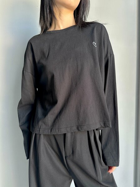 Универсальный базовый лонгслив свободного кроя из мягкого хлопка. Подходит для повседневной носки, офиса или прогулок. Легко сочетается с джинсами, брюками и юбками. Минималистичный дизайн дополнен небольшим вышитым сердечком на груди. Материал: хлопок с добавлением эластана (приятный к телу, дышащий, сохраняет форму). Крой: оверсайз, с заниженной линией плеча. Детали: круглый вырез горловины, длинный рукав, аккуратная вышивка в виде сердца. Размеры: стандартные (подходит на S, M, L). Цвет: чёрный.