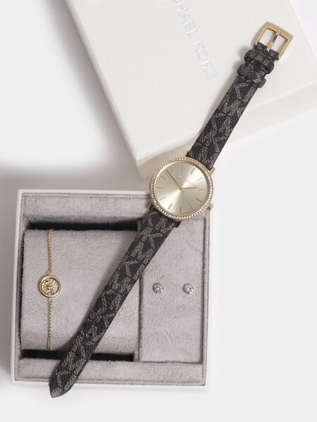 Женский набор часов Michael Kors MKO9001SET — стильное и практичное решение для тех, кто ценит элегантность и универсальность. Модель выполнена в фирменном дизайне бренда Michael Kors и подойдёт как для повседневного образа, так и для особых случаев. Часы оснащены надёжным кварцевым механизмом, который обеспечивает точный ход. Корпус и браслет изготовлены из прочной нержавеющей стали, устойчивой к износу. Минеральное стекло защищает циферблат от царапин. В комплект входят сменные элементы/аксессуары, что позволяет менять образ и сочетать часы с разными стилями одежды.