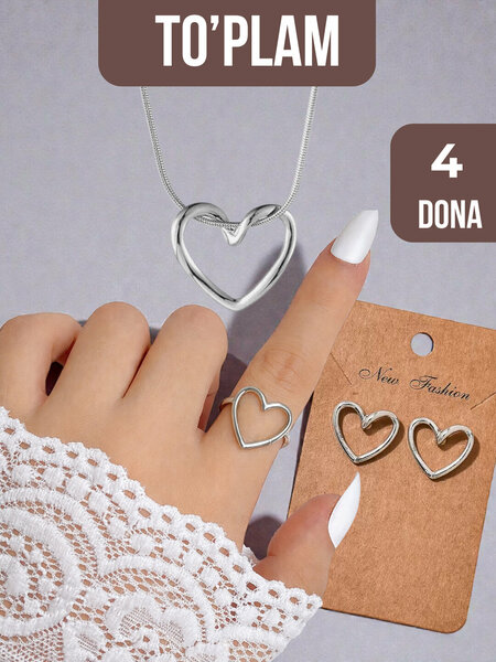 Элегантный женский набор бижутерии с дизайном в форме сердца — отличный выбор для тех, кто ценит стиль, нежность и современную классику. В набор входит 4 украшения, которые гармонично дополняют образ и делают его завершённым. Изделия выполнены из качественного бижутерийного сплава, лёгкие, удобные и приятные в носке. Украшения не вызывают раздражения кожи, не темнеют и долго сохраняют привлекательный внешний вид. Набор представлен в золотом и серебряном цветах. Лаконичный сердечный дизайн подчёркивает женственность и романтичность. Подходит для повседневной носки, работы, свиданий, праздников и особых мероприятий. Прекрасный вариант для подарка девушке, жене, подруге или близкому человеку. Преимущества: • Полный набор бижутерии — 4 изделия • Цвета: золото и серебро • Качественный бижутерийный материал • Не вызывает аллергию • Лёгкий и удобный • Современный дизайн в форме сердца • Для женщин и девушек • Отлично подходит в подарок