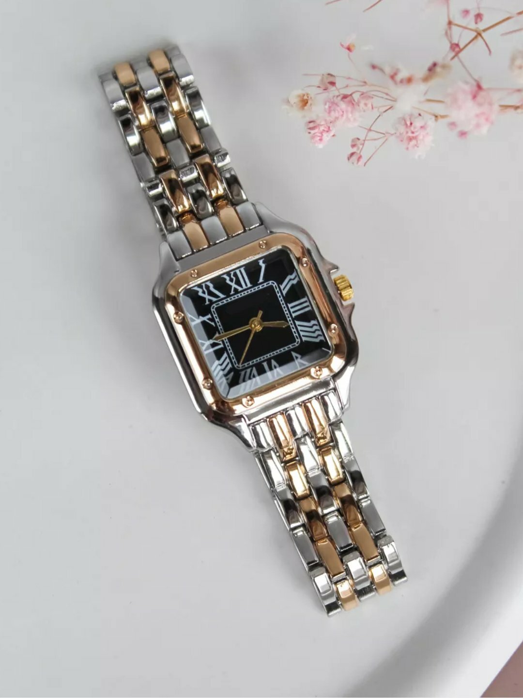 Женские часы Cartier — элегантность и роскошь в каждом движении (полный комплект) Cartier — это сочетание стиля, женственности и утончённости. Модель представлена в полном подарочном комплекте: часы, коробка, фирменный пакет и документы. Корпус и браслет выполнены из комбинации золота и серебра, квадратный чёрный циферблат придаёт образу выразительность. Работает на кварцевом (батарейном) механизме. ✅ Полный комплект (часы + коробка + пакет + документы) ✅ Кварцевый механизм ✅ Комбинированный браслет (золото + сталь) ✅ Классический квадратный циферблат ✅ Подарочная упаковка ✅ Элегантный и современный стиль