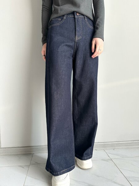 Женские джинсы тёмно-синего цвета выполнены из плотного денима, хорошо держат форму и подходят для повседневной носки. Прямая форма и высокая посадка обеспечивают комфорт и аккуратный внешний вид.