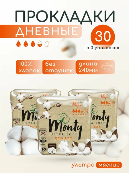 Гигиенические прокладки корейского бренда MONTY — идеальное решение для надежной защиты, комфорта, чистоты и свежести в течение всего дня во время месячных. Ультратонкие и гипоаллергенные прокладки подходят даже для самой чувствительной кожи. Средство женской гигиены изготовлено из натурального материала, такого как хлопок, что делает его лучшим выбором для каждой женщины, подростка и девочки, заботящихся о своем здоровье и удобстве. Женские гигиенические прокладки ULTRA SOFT NORMAL PLUS подходят для умеренных выделений и сохраняют ощущение сухости и свежести за счет мягкого хлопкового материала, мгновенно впитывающего влагу. Преимущества прокладок монти: • Комфорт и мягкость. Изготовлены из мягкого материала, что предотвращает появление раздражений. • Защита от протеканий. Обладают защитой благодаря своей конструкции и качеству материалов, что делает их удобными для повседневного использования. • Длительная свежесть. Использование специальных технологий уменьшает интенсивность запахов и обеспечивает длительную свежесть. • Разнообразие. Бренд предлагает широкий выбор размеров и типов прокладок, что позволяет подобрать оптимальный вариант для индивидуальных потребностей. Способ применения прокладок: 1. Разверните упаковку прокладки монти, обратив внимание на клейкую сторону, которая будет крепиться к белью. 2. Снимите защитную пленку с клейкой стороны. 3. Наклейте прокладку на чистое и сухое белье, убедившись, что она хорошо фиксируется. 4. Помните о регулярной смене одноразовых прокладок каждые несколько часов (обычно каждые 4-6 часов) для поддержания свежести и гигиены.
