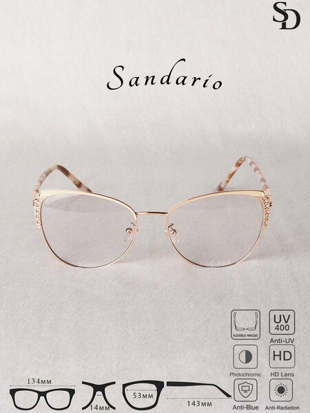 Изысканные женские очки SANDARIO в форме Cat Eye в тонкой металлической оправе созданы для тех, кто ценит лёгкость, элегантность и заботу о зрении. Модель подчёркивает глаза, визуально приподнимает черты лица и придаёт образу утончённый шарм. Модель оснащена HD-линзами, защитой Anti-Blue, Anti-Radiation и UV400, фотохромом и гибкими шарнирами для удобной и надёжной посадки.