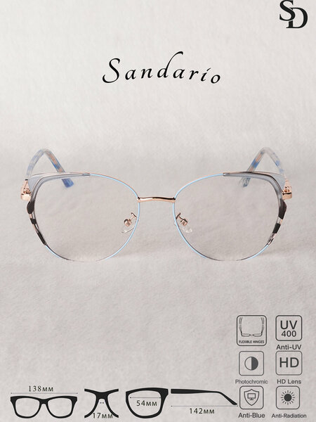 Женские очки SANDARIO в форме «кошачий глаз» — это элегантный аксессуар с лёгкой металлической оправой, сочетающий стиль и комфорт. Модель оснащена HD-линзами, защитой Anti-Blue, Anti-Radiation и UV400, фотохромом и гибкими шарнирами для удобной и надёжной посадки.