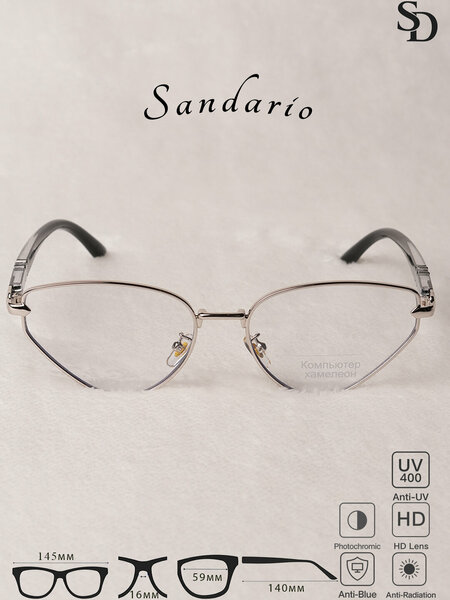 Женские очки SANDARIO в форме «кошачий глаз» — это элегантный аксессуар с лёгкой металлической оправой, сочетающий стиль и комфорт. Модель оснащена HD-линзами, защитой Anti-Blue, Anti-Radiation и UV400, фотохромом.