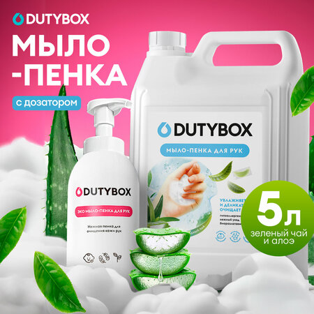 Жидкое мыло для рук 5 литров, с ароматом Алоэ и Зеленого чая . В выгодном семейном объеме 5 л. в комплекте со стильным дозатором. Гелевое мыло для рук от Дьютибокс - для бережного мытья рук и тела, сохраняет защитные функции кожи, обеспечивает деликатный уход, очищает не вызывая сухости и раздражения. Смягчающие компоненты антибактериального мыла сохраняют защитные функции кожи, обеспечивают деликатный уход, питает кожу и придает ей мягкость, а также имеет гипоаллергенный состав, который подходит для детей с первых дней жизни. Увлажняющее мыло гель для мытья рук спасет вас от неприятных запахов и любых загрязнений, а аромат Алоэ и Зеленого чая будет оставаться на ваших руках длительное время. Подходит для людей с чувствительной кожей. Питательное мыло с нежным ароматом никого не оставит равнодушным, дарят чувство спокойствия и заботы о вашей коже. Бережный нейтральный Ph состав 5,5 с натуральными маслами подходит для использования в качестве геля для душа. Жидкое мыло Дьюти бокс предназначено для пенного дозатора дозатора, который идет в подарок