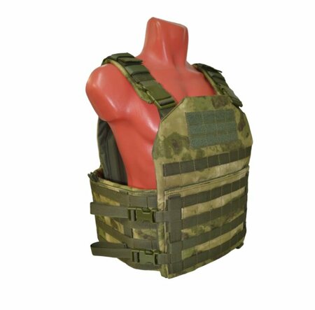 Жилет комплектуется быстросъёмными крепежами (4 шт.) с фастексами для камербанда, предназначенные для более удобного расстёгивания плитника, также камербанды можно использовать без крепежей, используя стандартное крепление на велкро липучке. Большое покрытие молле-стропами даёт возможность размещать навесное снаряжение на молле интерфейсе почти по всей поверхности. Комплектуется съёмными плечевыми амортизирующими накладками. Боковые секции (камербанд) предназначены для увеличения количества ячеек для крепления снаряжения на молле интерфейсе. Материал: Нейлон 900D Вес: 1290 гр. Производство ВТС Россия.