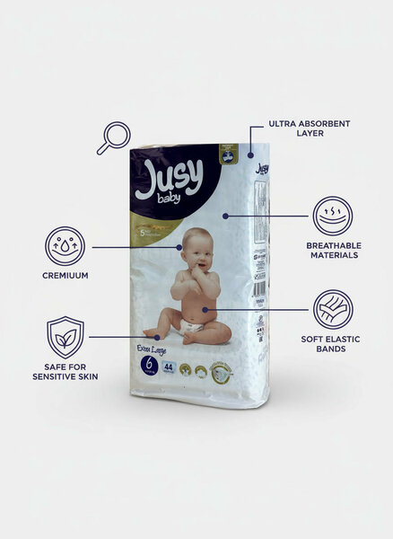 Подгузники Jusy Baby – комфорт и защита до 12 часов для девочек и мальчиков, 15-35 кг, 44шт