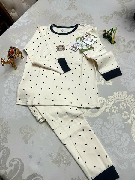 Детская белая пижама — идеальный выбор для сладкого сна и уютных ночей! Эта очаровательная пижама создана, чтобы подарить ребёнку комфорт и тепло во время сна. Изготовлена из натурального мягкого хлопка, приятного на ощупь и безопасного для детской кожи. Подходит для детей от 2 до 7 лет. Комплект состоит из лонгслива с длинными рукавами и штанишек. Дизайн: Основной цвет: молочно-белый Украшена мелкими чёрными квадратными точками На груди — милый рисунок львёнка и надпись “Lion” Манжеты и воротник выполнены в тёмно-синем цвете, что придаёт стильный акцент Минималистичный и аккуратный крой Материал: 100% натуральный хлопок Дышащая и гипоаллергенная ткань Не теряет форму и цвет после стирки Очень мягкая и приятная к телу Преимущества: Обеспечивает комфорт и тепло во время сна Не раздражает кожу Подходит для круглогодичного использования Лёгкая, мягкая и удобная Рекомендуется для: Ночного сна, отдыха дома и поездок В качестве подарка ребёнку — практично и мило Пусть сон вашего малыша будет сладким, а утро — радостным в этой уютной пижаме!