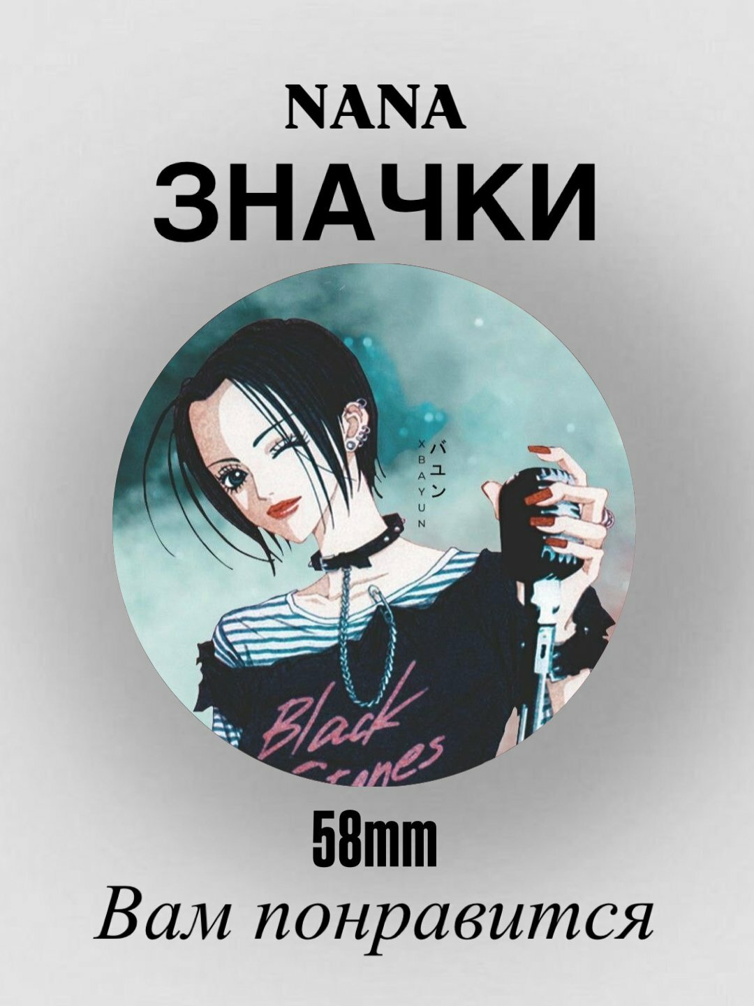 Значок NANA аниме: стильный аксессуар для поклонников аниме Значок NANA аниме станет отличным дополнением к вашей коллекции аниме-аксессуаров. Изготовленный из качественных материалов, он будет радовать вас своим ярким и стильным дизайном. Значок имеет диаметр 58 мм, что делает его заметным и привлекательным. Защитная пленка на значке Значок покрыт защитной пленкой, которая защищает его от царапин и повреждений при транспортировке. Это гарантирует сохранность значка и его привлекательный внешний вид. Выбирая значок NANA аниме, вы получаете стильный и качественный аксессуар для себя или в качестве подарка для любителей аниме.