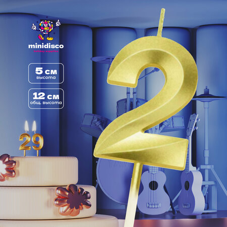 Золотая свеча для торта "Цифра 2" от бренда Minidisco