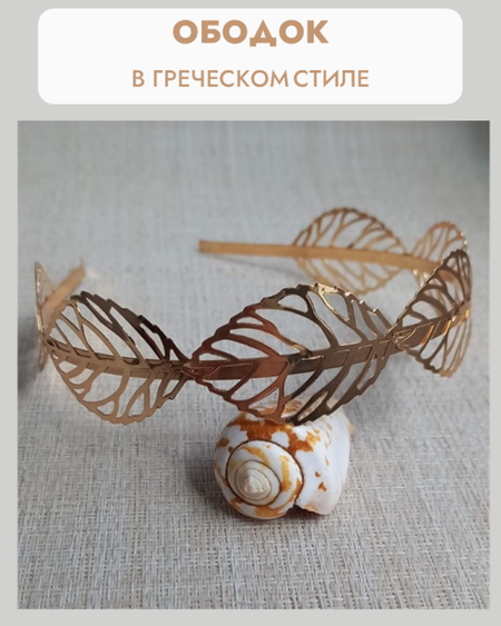 Ободок "Лавровый Венок" в Греческом Стиле: элегантный аксессуар для любого образа Изысканный дизайн: Ободок выполнен из золотистого металла, украшен нежными листочками в греческом стиле. Это придает образу женственность и изысканность, делая его подходящим как для повседневного использования, так и для особых мероприятий. Сияние золотистого металла и нежные листочки создают неповторимый образ, который обязательно привлечет восхищенные взгляды окружающих. Ободок "Лавровый Венок" станет отличным дополнением к вашему образу и подчеркнет вашу индивидуальность.