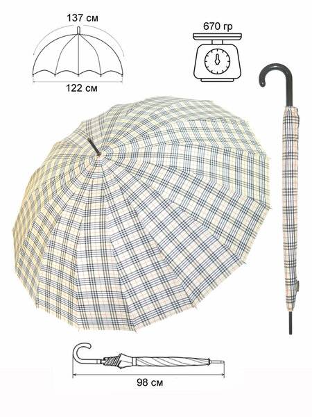 Зонт-трость Ame Yoke L-70CH. Красивый, элегантный зонт с большим куполом и автоматическим механизмом открывания. Зонт имеет 16 спиц, что делает его конструкцию максимально ветроустойчивой, а сами спицы имеют надежные соединения кованными клепками. Зонт выполнен из высококачественной стали, и углеволокна нового поколения, а благодаря тому, что купол зонта имеет тефлоновую пропитку, капли воды не задерживаются на куполе, а скатываются и зонт не протечет, даже при сильном дожде и быстро высохнет после, а так же, пропитка предохранит зонт от быстрого выцветания. Ручка зонта выполнена в виде крюка и отделана экокожей, а так же зонт имеет чехол, что очень удобно в хранении. Зонты Ame Yoke, это зонты традиционно высокого японского качества, изготовленные с учетом последних разработок японских инженеров.
