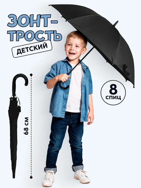 Элегантный однотонный зонт трость подойдет взрослым и подросткам. Зонтик легкий, удобный и лаконичный. Прочный металлический каркас из нержавеющей стали с антикоррозионным покрытием имеет 8 спиц из стекловолокна с наконечниками. Ткань купола - нейлон. Диаметр зонта 86 см, длина в сложенном виде - 67 см, вес всего - 250 гр. Ручка крюк из гладкого пластика. Механизм - полуавтомат, автоматическое открытие одной кнопкой, закрытие механическое вручную. Материал купола - плотный эпонж, смесь полиэстера с хлопком и специальной водоотталкивающей пропиткой, которая позволяет отталкивать влагу.