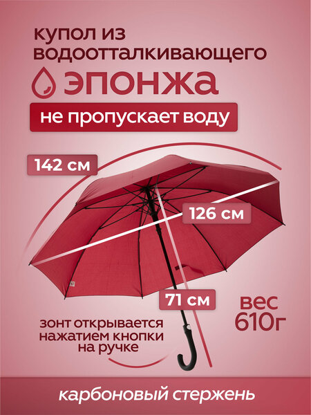 Зонт-трость Raindrops - это стильный и функциональный аксессуар, который станет незаменимым помощником в любую погоду. Дизайн и материалы: Зонт выполнен в ярком красном цвете, что делает его заметным и стильным аксессуаром. Каркас зонта изготовлен из прочной стали с антикоррозийным покрытием, а купол - из влагостойкого и быстросохнущего эпонжа. Ручка крюк выполнена из пластика с покрытием soft touch, что обеспечивает комфортное использование даже при длительном ношении. Функциональность: Зонт-трость оснащен системой "антиветер", которая обеспечивает дополнительную устойчивость и надежность в ветреную погоду. Диаметр купола составляет 142 см, что позволяет использовать зонт как семейный вариант. В сложенном состоянии зонт имеет длину всего 96 см и весит 610 грамм. Зонт-трость Raindrops - это надежный и стильный аксессуар, который станет незаменимым помощником в любую погоду.